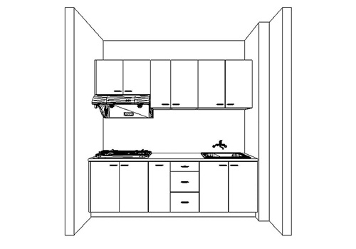 一字型的空間已經較小,相對工作檯面的大小就非常重要,必須在有限空間中爭取最大的使用範圍。瓦斯爐距離水槽的這段區域,為料理時的主要工作檯面,會擺放洗好的食材、切菜的砧板及切好準備下鍋的材料等,因此需要較為寬裕的使用空間,通常至少要有約40~60公分的距離,能達到80~90公分為最佳。
